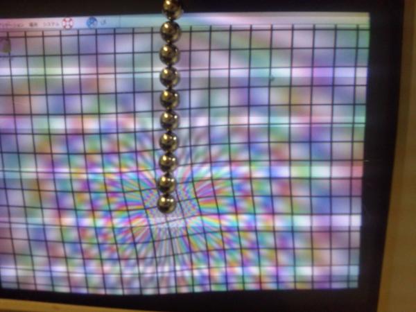 のように(ほぼ)全く画面が乱れない(つまり磁力線が外に出ない)というのを実際に見せた(上の写真は何年か前にやったもの)。