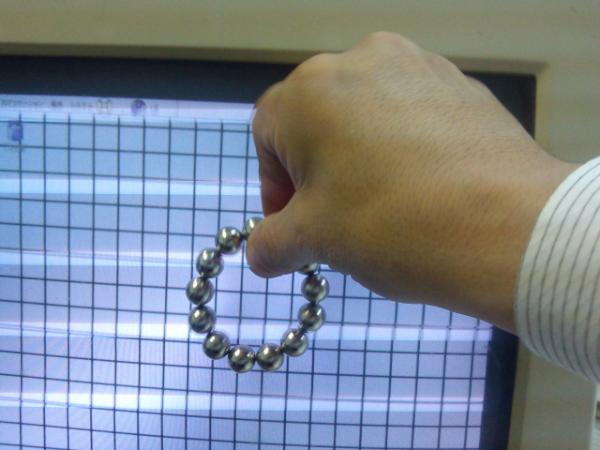せっかくなので眼に見える形で確認しようということで、数珠状の磁石を下のようにまっすぐ垂らすと