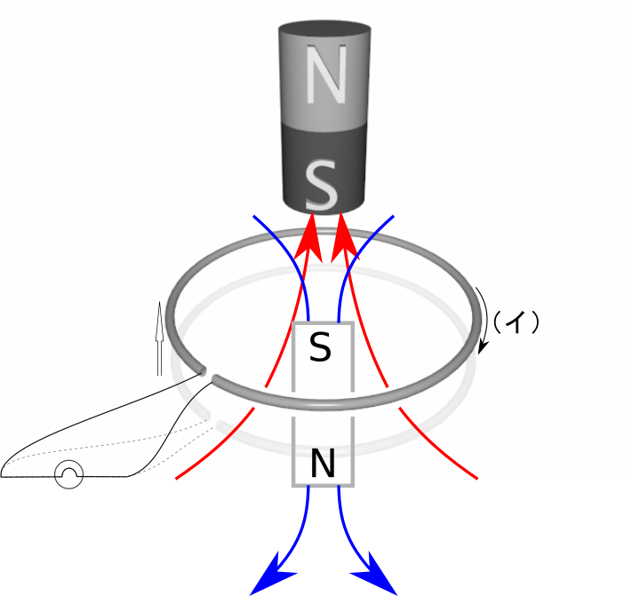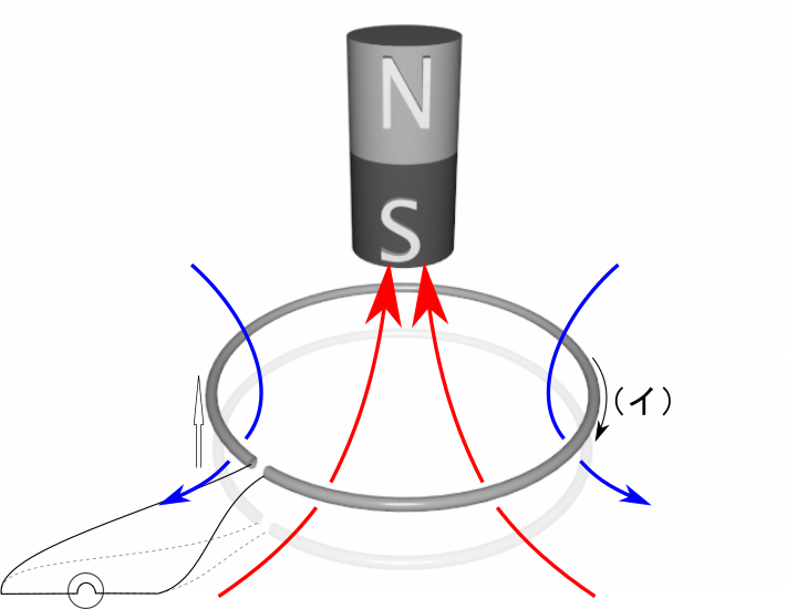 ↑意味不明である。そもそも「磁束が下向きに働く」と言われても磁束は働くものではない(力なら働いてもいいが)。こういう、用語の使い方がデタラメな答案もみられたが、「人に説明する」ときには明瞭で正しい言葉を使おう。