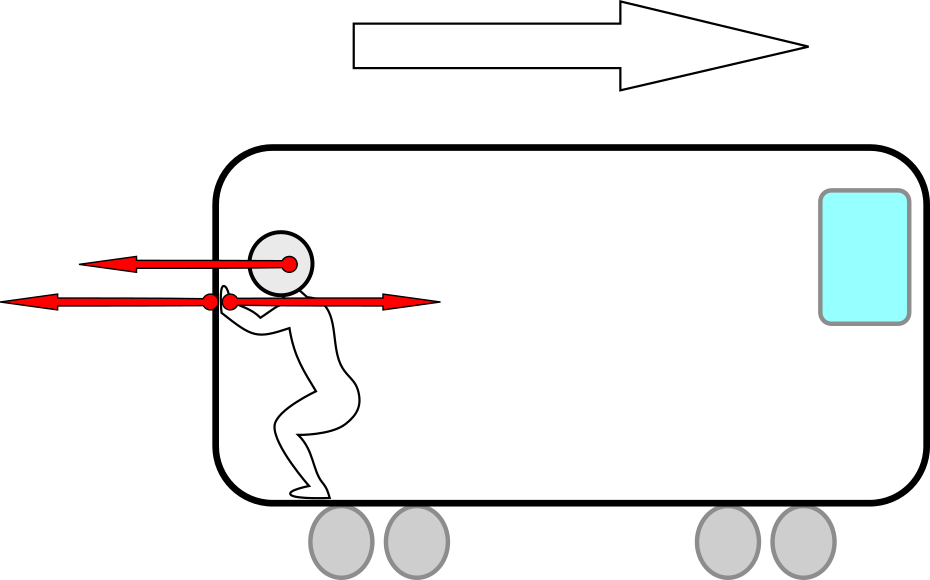 電車は遅くなり、その替り人間は右向きに加速する。結果、