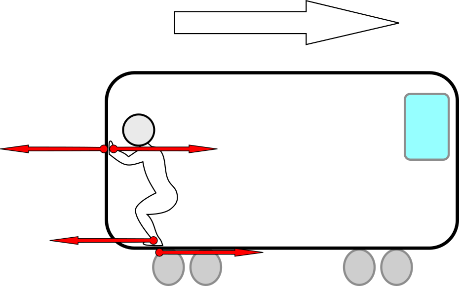 作用・反作用の法則から、「人が電車を押す力」があれば「電車が人を押す力」がある。というわけで、