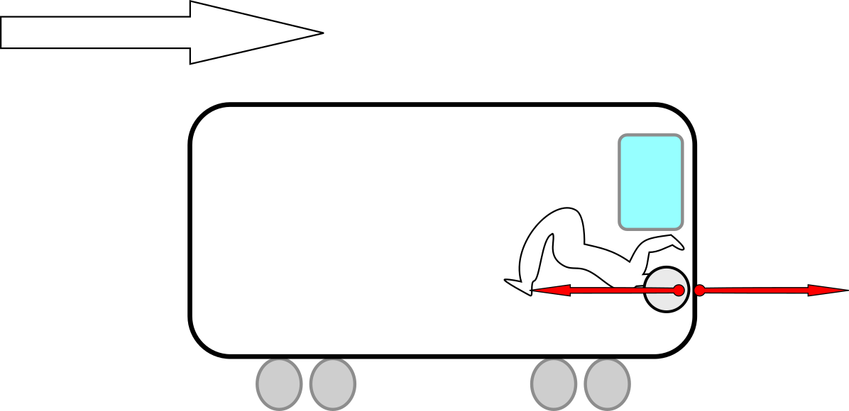 では、電車が加速・減速するときはどうなっているのかというと、レールを通じて「地球」が逆向きに加速している(地球は質量が大きいので見た目はわからないけど)。