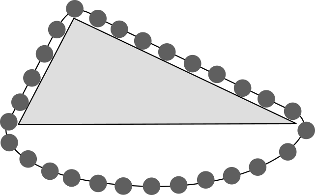 図のように鎖を三角形に掛ける。右の辺の方がおもりの数が多いから、右側がおちる・・・・わけがない。