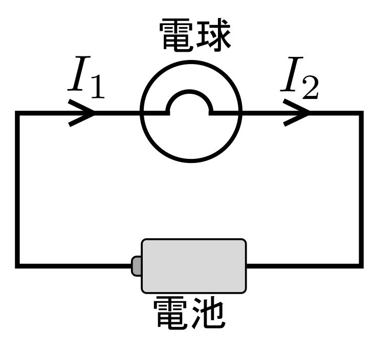 たとえば電球を通った後電流が減るのだとすると、(後ろの電流の定義をよく見ること)電球の中に電荷がどんどん溜まってしまう。これはありえない、ということは電流がなにかをわかっている中学生なら納得してもらえる(だから定義は重要なのだ)。