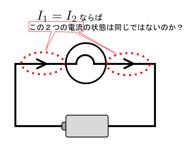 一本の導線では電流は一定だから。