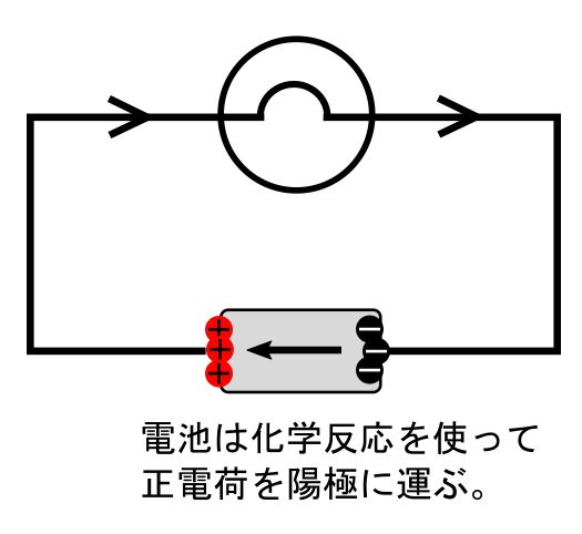 電池が行うことは、化学反応を使って電荷を移動させ、陽極の電位を上げ、陰極の電位を下げることである。