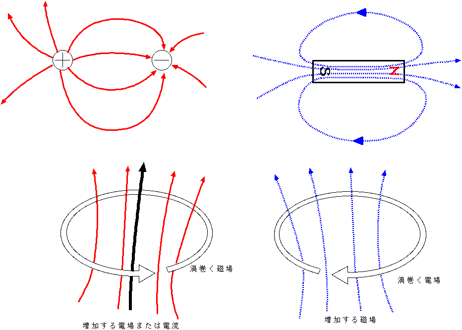 なお、図ではrotがゼロでない状態の電場を、まるで渦を巻いているかのように書いたが、rotがゼロでないからと言って別