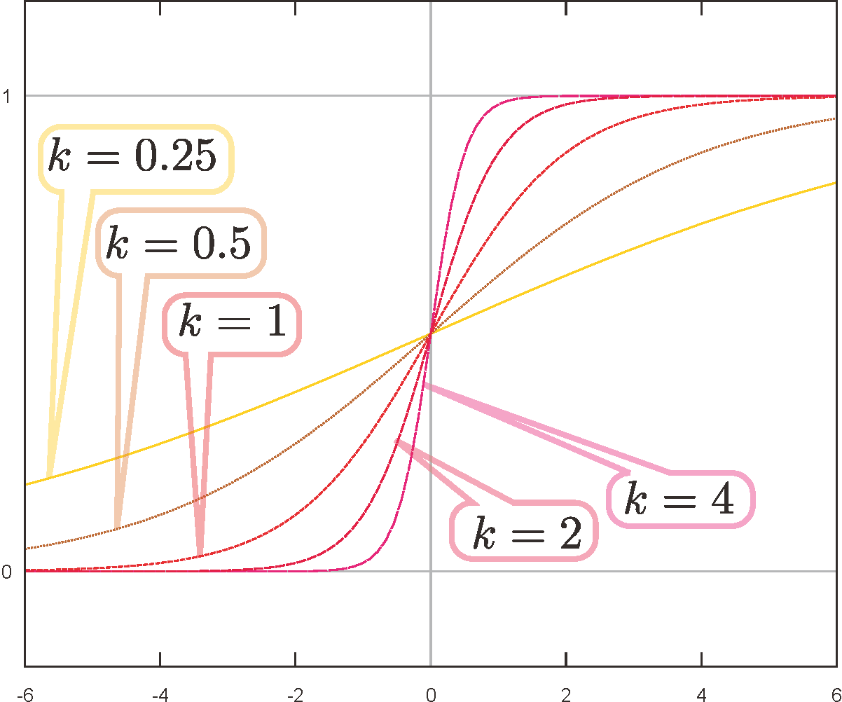 この結果をグラフにすると次のようになる(グラフは$k$を変化させた場合)。