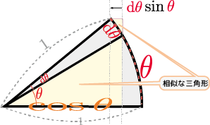 としたのち、極限を考えて$\cos \coldx=1,\sin \coldx = \coldx$を使う。ここで$\sin \coldx = \coldx$となる理由については