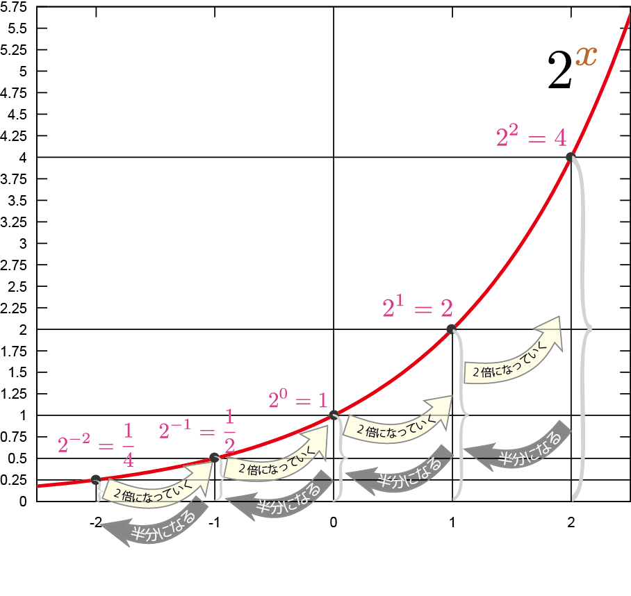 である。よって、$2^{-1}={1\over 2}$,$2^{-2}={1\over 4}$と半分にしていけばよいのではないかと思われる。