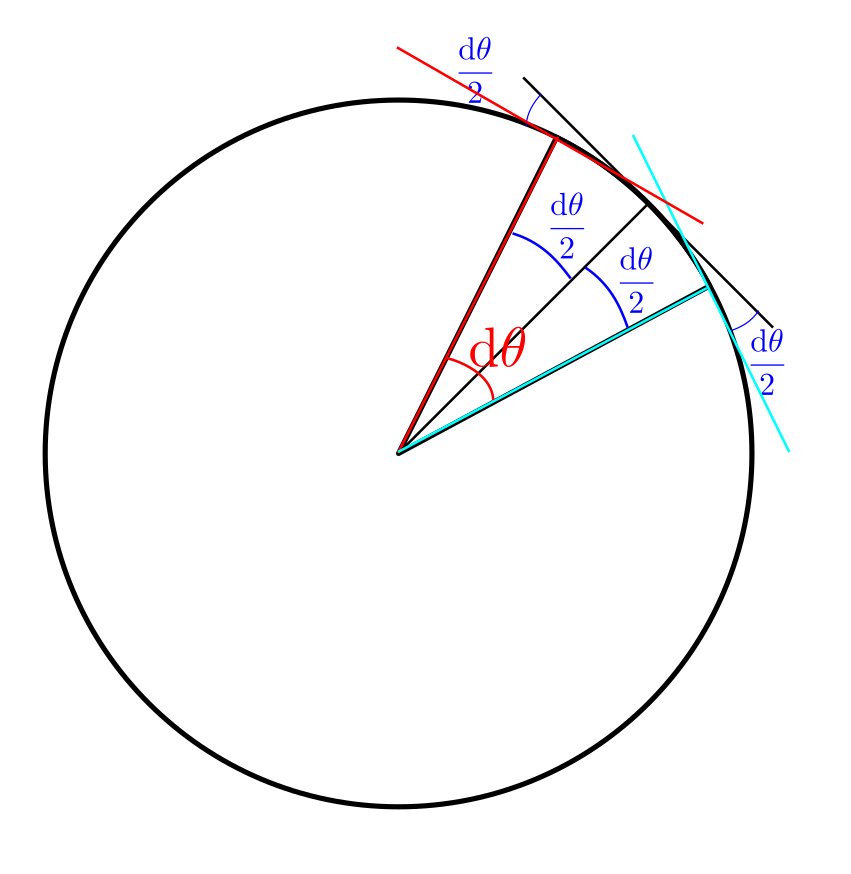(そして、Nに垂直な方向とはdθ/2ずつ角度が違う)ことを使って考えると・・・の部分がわかりません。dθ/2ずつ角度が違うのはなぜですか